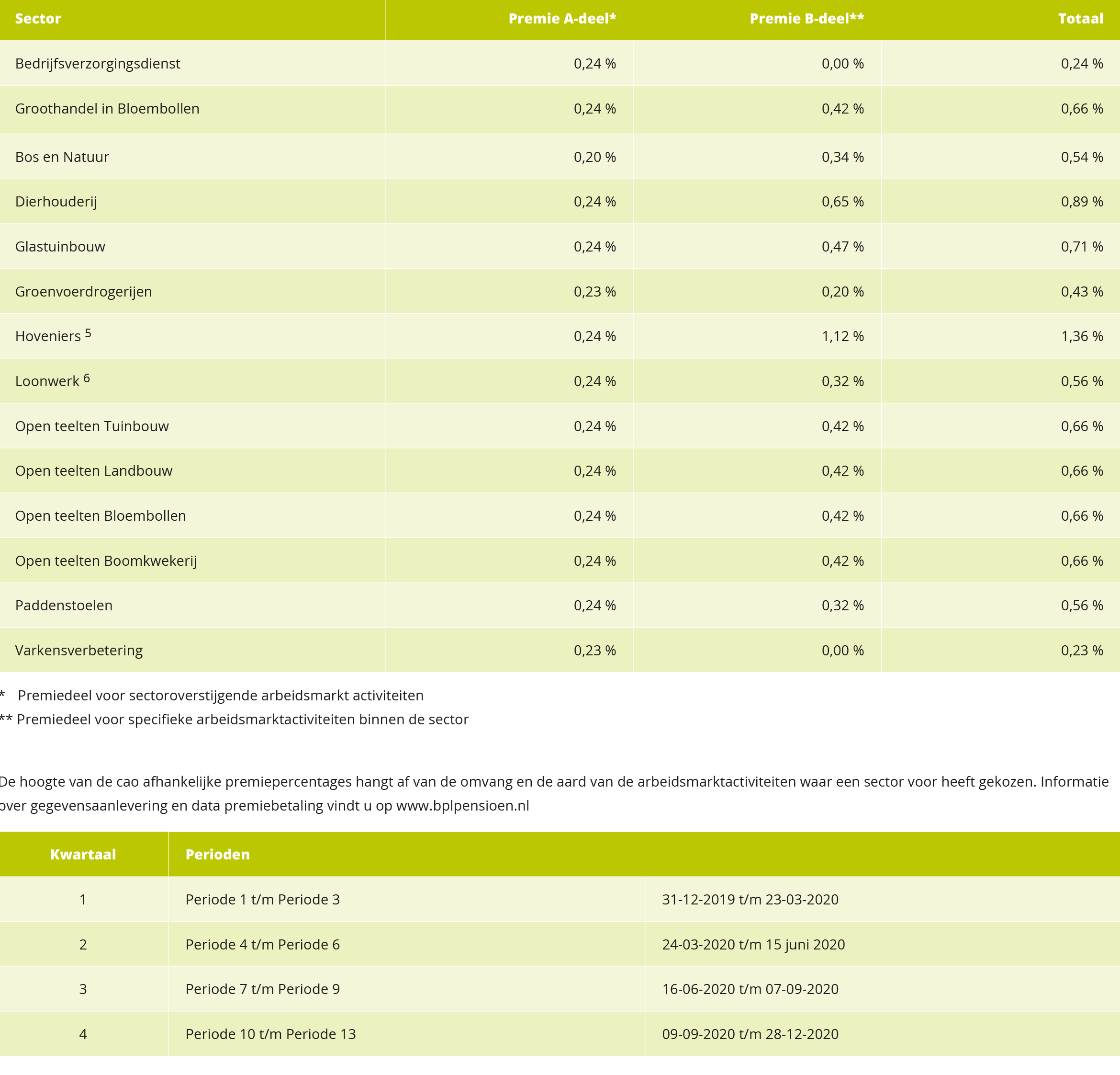 2) Afhankelijk van deelname en cao. Geldt voor de cao’s Open Teelten (Tuinbouw, Landbouw, Bloembollen en Boomkwekerij), LEO, Hommel en Van Kessel B.V.