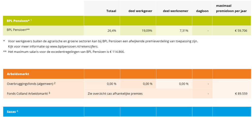 2) Afhankelijk van deelname en cao. Geldt voor de cao’s Open Teelten (Akkerbouw, Bloembollenteelt, Buitenbloemen, Boomkwekerij, Fruitteelt en Vollegrondsgroenteteelt), Groen Grond en Infrastructuur (GGI), Hommel en Van Kessel B.V.